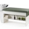 Structure white, white or black sink, white rear column, sink adjustable forwards/backwards and tilting. Fixed backrest.